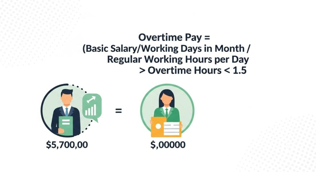- أجر ساعة الأوفرتايم = أجر الساعة العادي × 1.5
