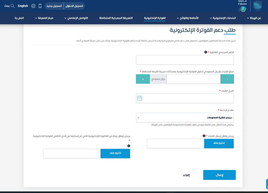 3. اطلب الدعم: داخل القسم، ستجد أيقونة واضحة لـ “طلب دعم الفوترة الإلكترونية“، اضغط عليها.